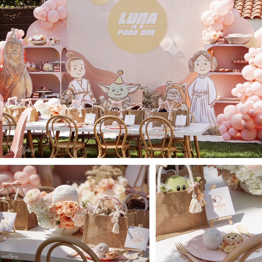 Your complete solution for a fully styled Star Wars Tatooine Birthday Party. Designed with modern desert tones and subtle space details for a clean, elevated celebration look.