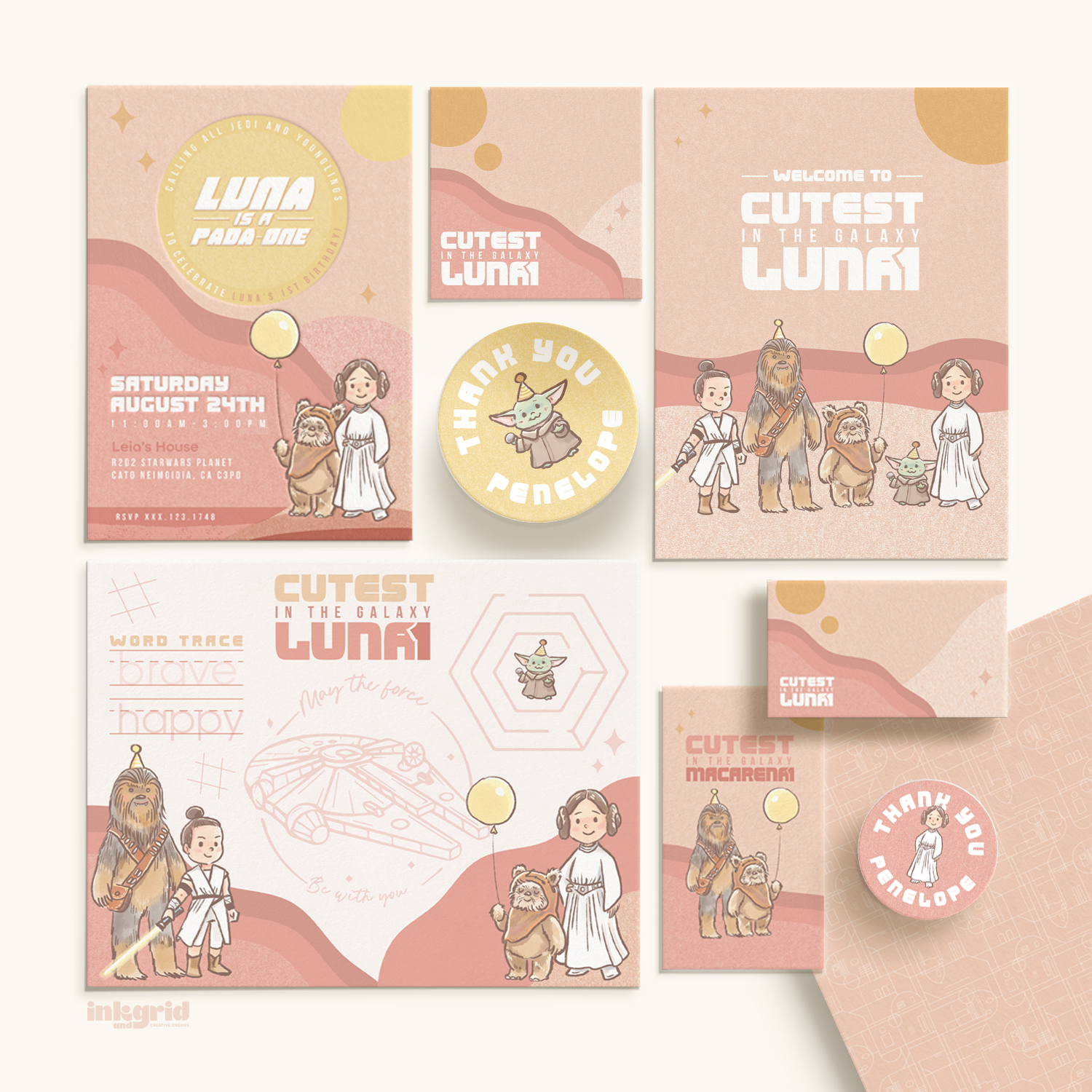 Perfect for families looking for a unique, modern take on a Star Wars-inspired birthday.