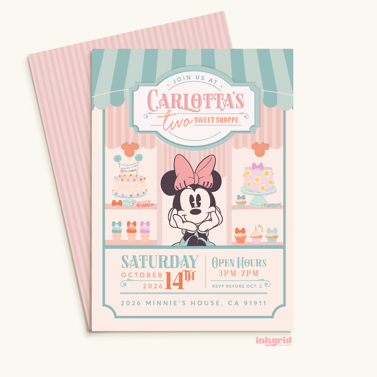 This Candy Shop Birthday Party Bundle includes matching designs inspired by nostalgic sweet shoppes, pastel desserts, and vintage storefront charm. It’s the easiest way to create a cohesive, magical party look with minimal effort.